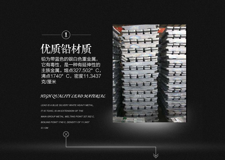 鉛錠呈長方形、兩端有突出耳部,蘭白色金屬,較軟。密度11.34g/cm3,熔點(diǎn)327℃