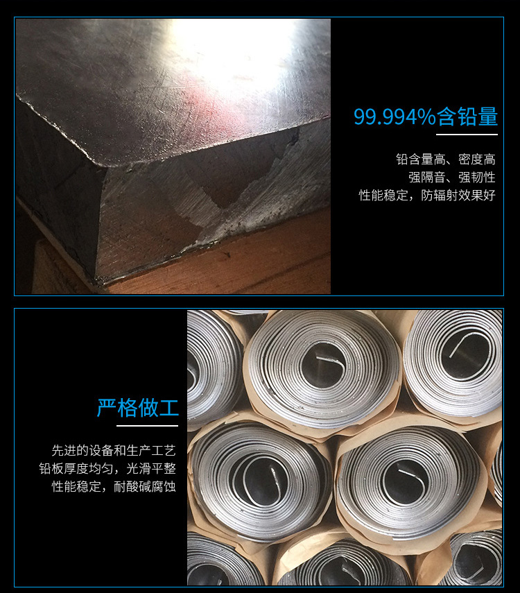 鉛板,指用金屬鉛軋制而成的板材。具有很強的防腐蝕,耐酸堿的性能,在耐酸環(huán)境施工、醫(yī)用防輻射,X光,CT室射線防護、加重、隔音等許多方面,也是一種比較廉價的防輻射材料。鉛板,指用金屬鉛軋制而成的板材.比重為11.345g/cm3。目前國內(nèi)常見的厚度為0.5-500mm,常用規(guī)格為1000*2000MM,國內(nèi)****的機器可制作**寬2000MM,**長30000MM,多采用1#電解鉛制作,市面上也有采用回收鉛制作而成的。其品質(zhì)略差些,價格相差些許。