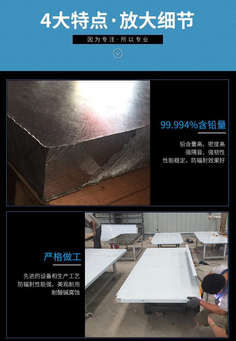活動(dòng)門運(yùn)行平穩(wěn)。門體內(nèi)部采用硬質(zhì)聚氨酯整體高壓發(fā)泡工藝,高強(qiáng)度鋁合金框架,經(jīng)自動(dòng)升降液壓設(shè)備大平臺(tái)壓制成型。專用設(shè)備保證門扇的良好平整度。表面可按用戶要求外飾大平面亞光不銹鋼板、噴塑鋼板、鋁板、電解板等各種板材。周邊裝有密封條,符合醫(yī)院使用的衛(wèi)生要求。門體面板及門框內(nèi)襯2毫米鉛板,鉛當(dāng)量為1~2mmpb,可遮蔽x射線及多種有害射線。防止多種有害射線泄漏對(duì)人體造成傷害。內(nèi)襯鉛板通過衛(wèi)生部射線防護(hù)器材防護(hù)質(zhì)量監(jiān)測(cè)中心檢測(cè),符合診斷x射線防護(hù)要求??刹捎闷揭苹驓饷苁阶詣?dòng)門做載體。外表面懸掛平移式,門體內(nèi)襯鉛板,可不需門框。