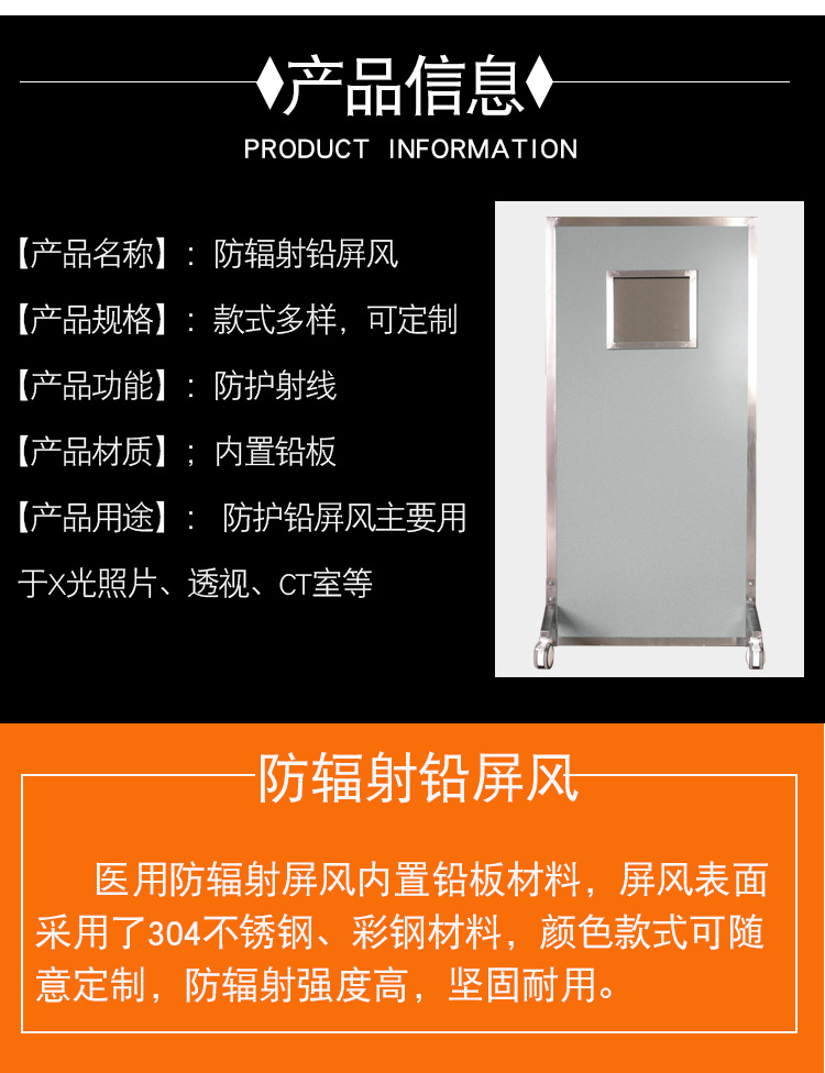 加工制作規(guī)格齊全輻射防護(hù)鉛屏風(fēng) 移動(dòng)射線防護(hù)屏風(fēng)